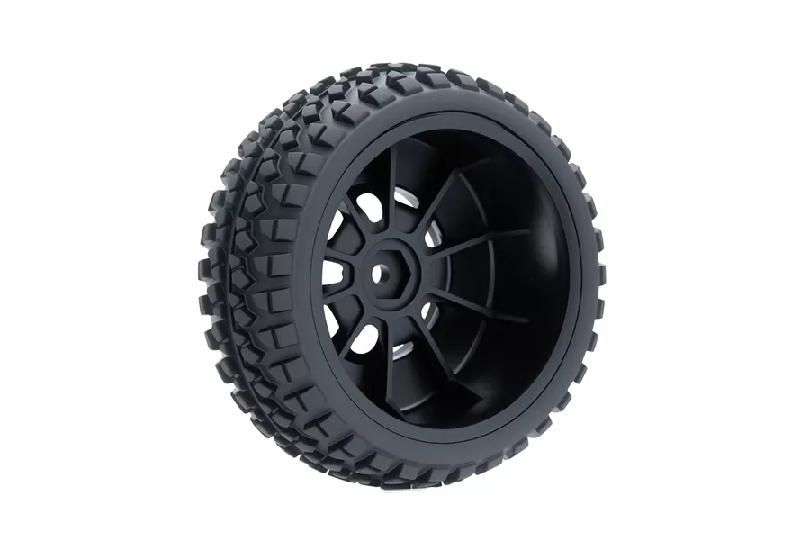 Les pneus sont en caoutchouc à haute adhérence et sont équipés de garnitures en éponge pour améliorer l'amorti et la réponse de manipulation.