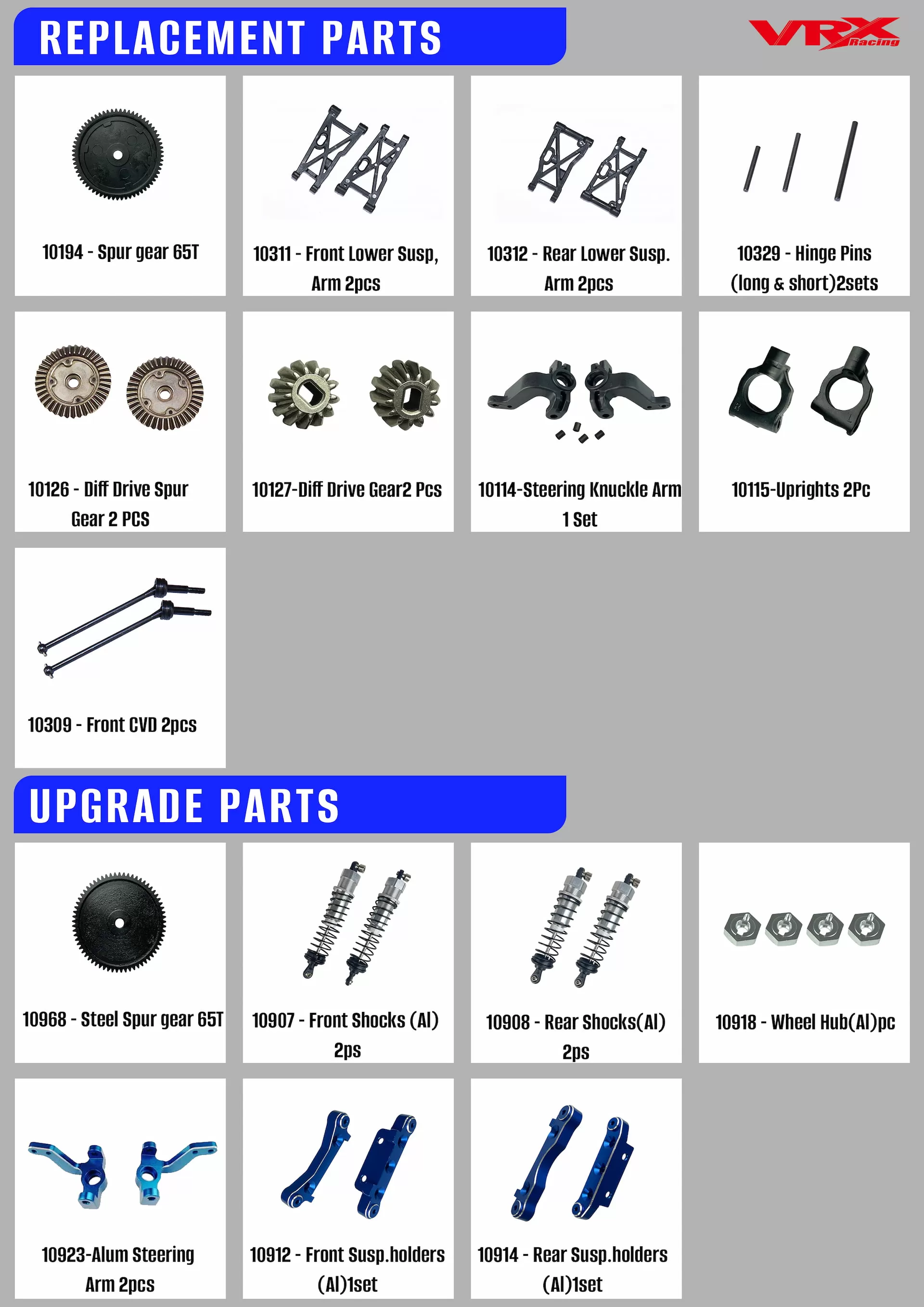 En contrôlant le mouvement de la suspension, les chocs stabilisent le châssis pendant l'accélération, le freinage et les virages, minimisant le roulis et empêchant la perte de contrôle. Les chocs réglables remplis d'huile permettent un réglage fin de l'amortissement de compression et de rebond, permettant la personnalisation de différents terrains.