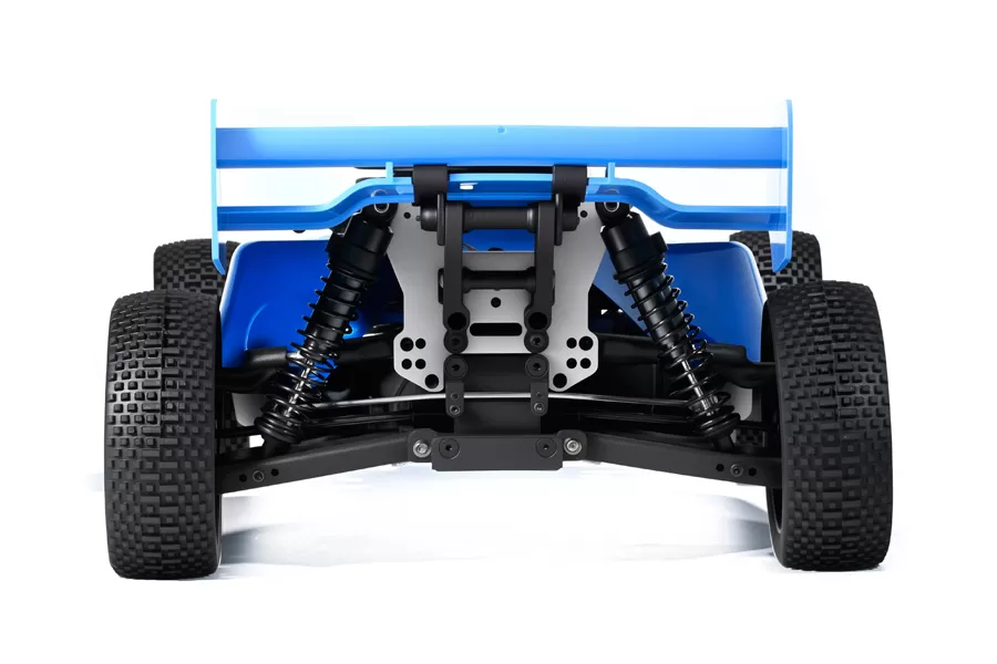 Afin de rendre le Buggy plus puissant et plus stable, nous l'avons équipé de tous les amortisseurs hydrauliques en aluminium et de plaques de choc avant et arrière. Il rend la voiture plus résistante aux collisions. Châssis solide dans l'ensemble! Les poignées saute bien et répartit le poids uniformément pour des atterrissages en douceur. Ce n'est pas le plus léger, mais le compromis est la durabilité.
