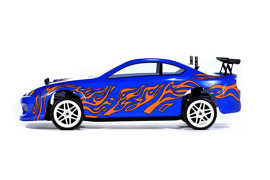 Cette 1/10 Wyvern sur route utilise un puissant moteur 540 brossé associé à une batterie NiMh 7.2V 1800mAh pour une accélération explosive, atteignant 35 km/h.
