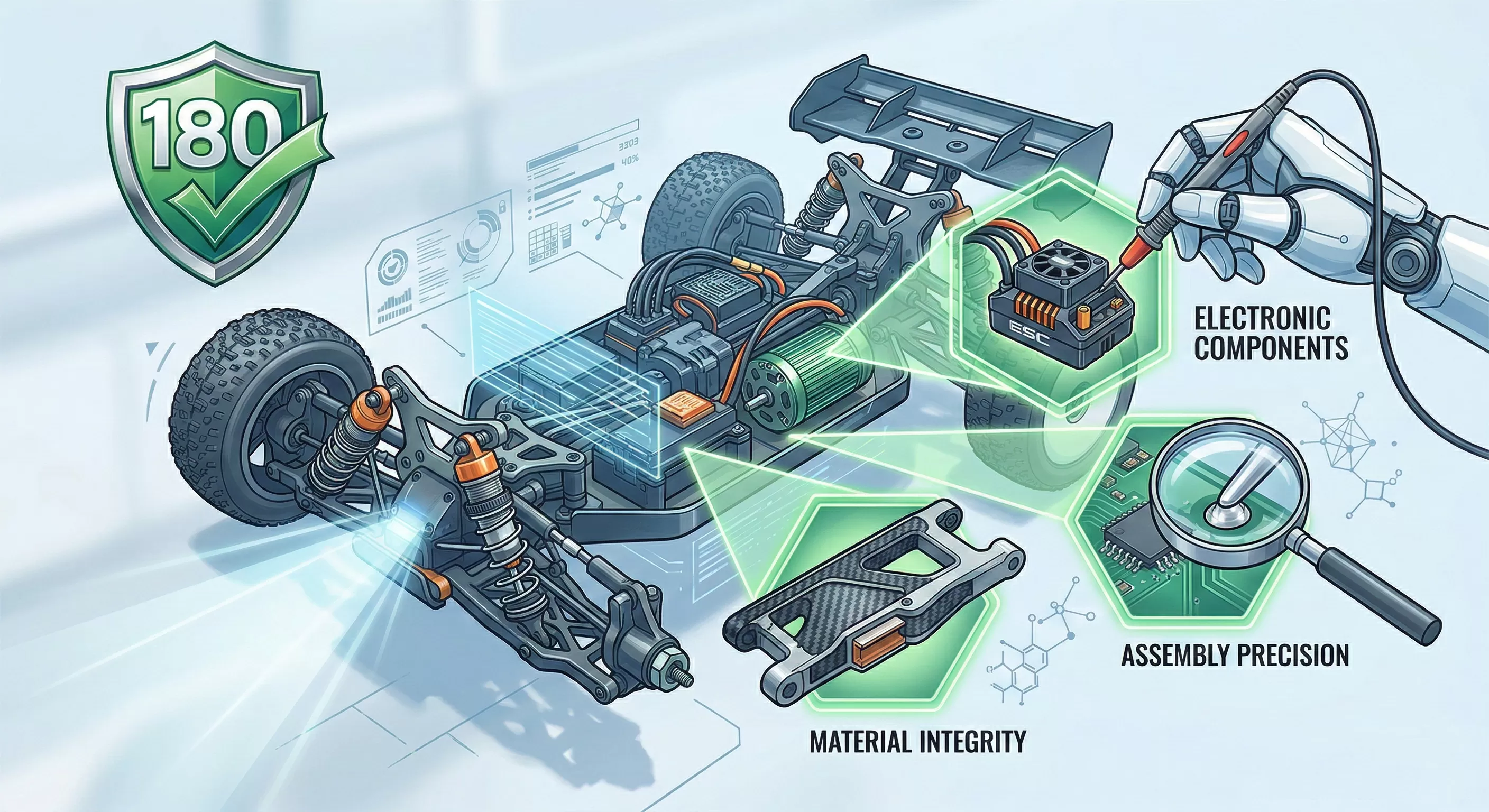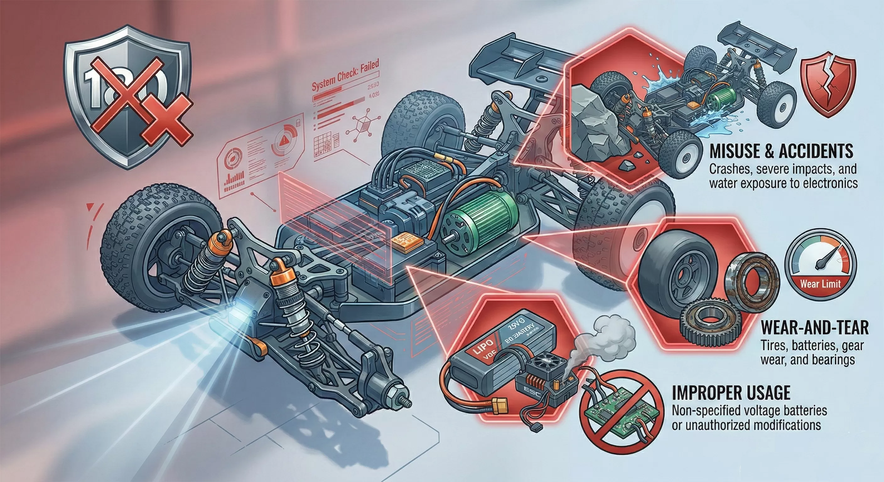 La conduite RC haute performance implique un stress extrême. Les éléments suivants sont exclus: